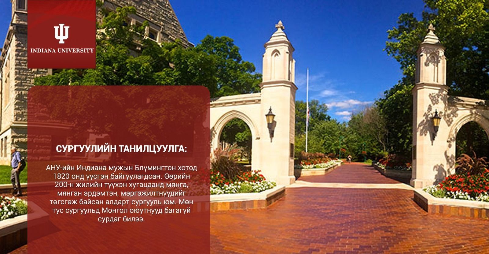 АНУ-ийн Индиана мужын Блүмингтон хотод 1820 онд үүсгэн байгуулагдсан. Өөрийн 200-н жилийн түүхэн хугацаанд мянга, мянган эрдэмтэн, мэргэжилтнүүдийг төгсгөж байсан алдарт сургууль юм. Мөн тус сургуульд Монгол оюутнууд багагүй сурдаг билээ.