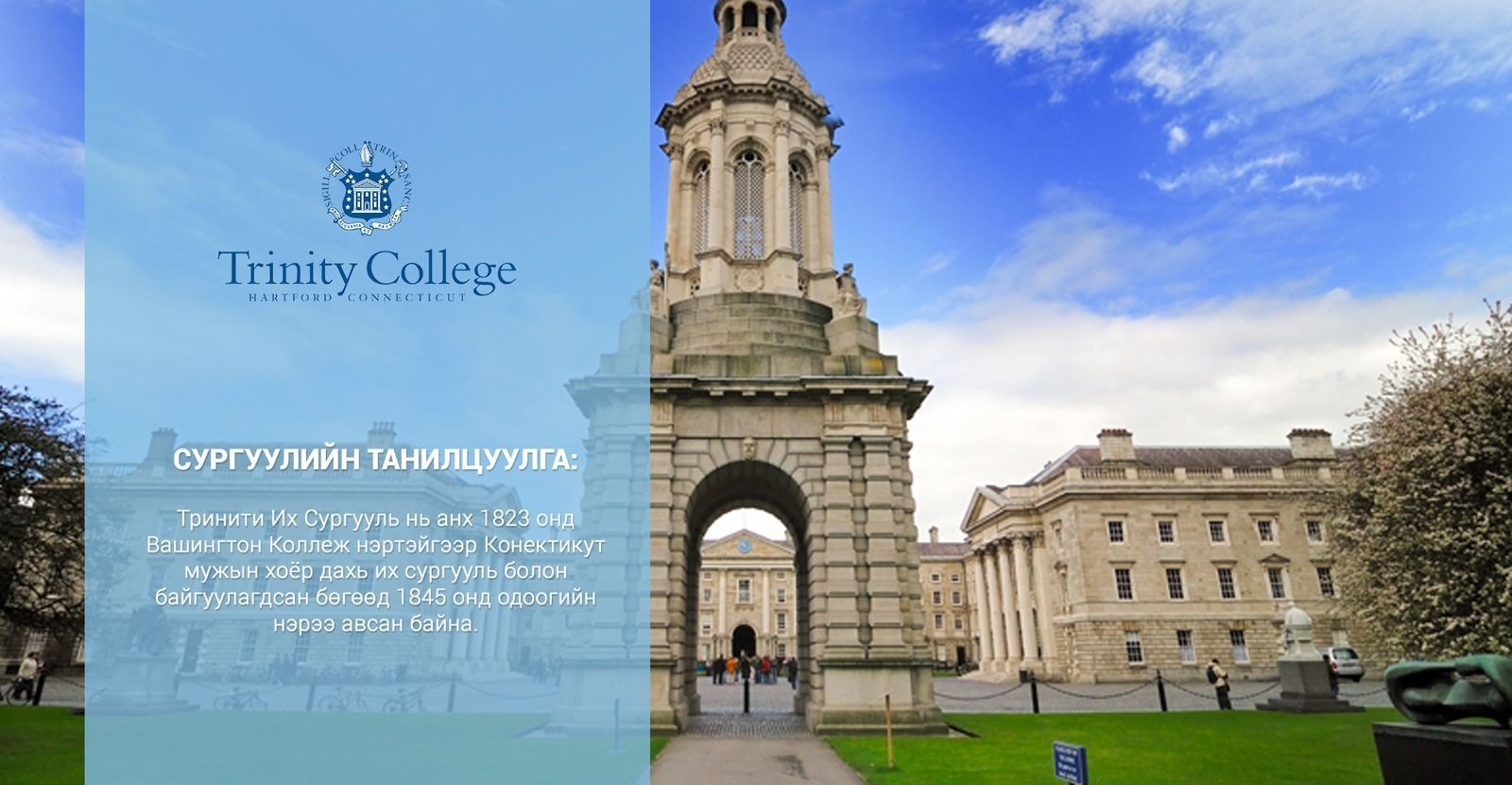 Тринити Их Сургууль нь анх 1823 онд Вашингтон Коллеж нэртэйгээр Конектикут мужын хоёр дахь их сургууль болон байгуулагдсан бөгөөд 1845 онд одоогийн нэрээ авсан байна.