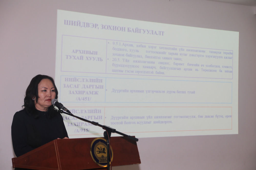 Сургалтад нийслэлийн есөн дүүргийн архивын дэргэдэх Баримт, бичиг нягтлан шалгах комиссын гишүүд, дүүргүүдийн Засаг даргын Тамгын газар, архив, албан хэрэг хөтлөлт хариуцсан ажилтнууд оролцсон юм.