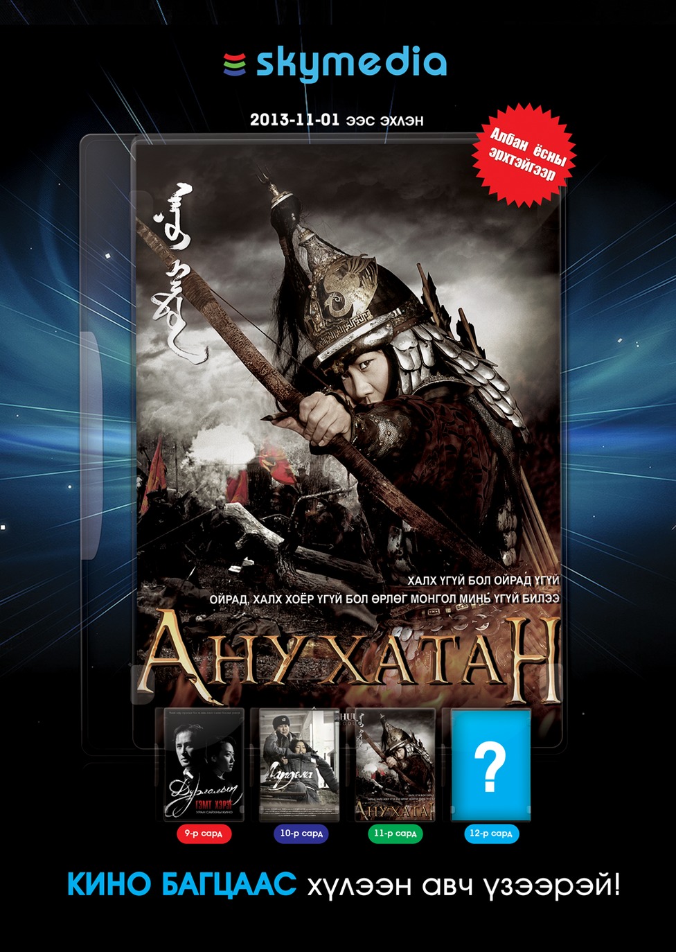 Өнгөрсөн саруудад “Дурлалын гэмт хэрэг”, “Лардьма” кинонуудыг зөвхөн Скаймедиа хэрэглэгчид онцгой эрхтэйгээр хүлээн авч үзсэн билээ. Тэгвэл Монголын түүхэн дэх домогт хатны тухай өгүүлэх 2 дахь бүрэн хэмжээний киногоор энэхүү буухиа үргэлжилж байна.