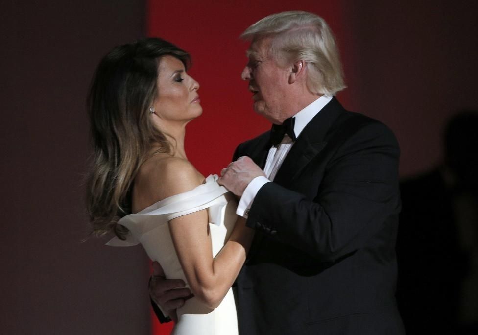 ФОТО: Тангараг өргөх ёслолын орой хүлээн авалтын үеэр тэргүүн хатагтай Каролина Херрера зэрэг нэрт дизайнеруудын хамт өөрийн хүсэлтээр загварыг нь гаргасан урт цагаан даашинз өмссөн байна. Энэ үеэр Ерөнхийлөгч болон Тэргүүн хатагтай нар Фрэнк Синатрагийн "Му Way" дуун дээр бүжиглэжээ. /2017 оны нэгдүгээр сарын 20, Вашингтон хот, АНУ/