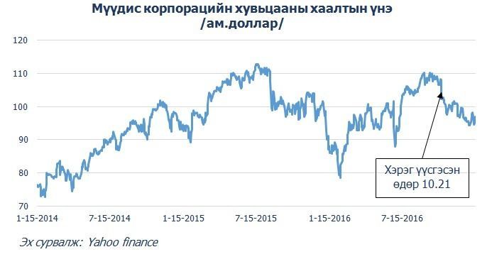 Мүүдисийн хувьцаа 2017.1.13-ны баасан гаригт 96.96 ам.доллар дээр хаагдсан. Өмнө нь 2016.10.21-ны өдөр ерөнхий шүүхээс Мүүдисийн эсрэг хэрэг үүсгэсэн өдрөөс хойш хувьцаа 5.4 хувиар унаад байгаа аж. Тус үйл явдал хувьцааны үнийг аврах эсвэл уналтыг үргэлжлүүлэх нь тодорхойгүй байсаар байна.