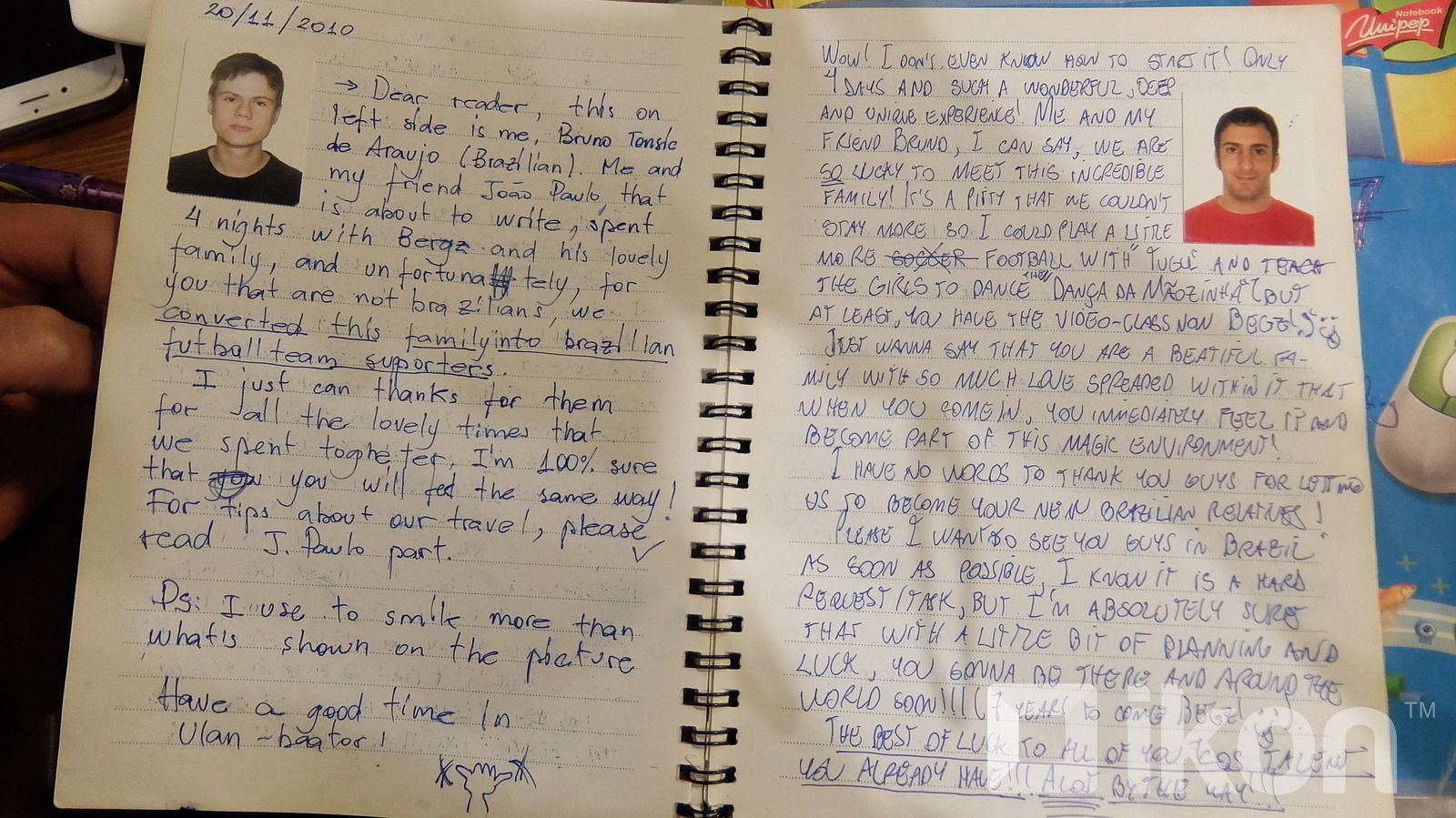 - Бидэнд зочдын дэвтэр гэж байдаг юм. Тэр дэвтэр дээр аялагчид манайд байсан үеийнхаа сэтгэгдэлийг, мөн Монгол орны талаар ямар сэтгэгдэлтэй үлдсэнээ бичиж үлдээдэг юм. Дэвтэр дээр бичсэнээр одоогийн байдлаар 800 орчим хүн ирсэн байна.