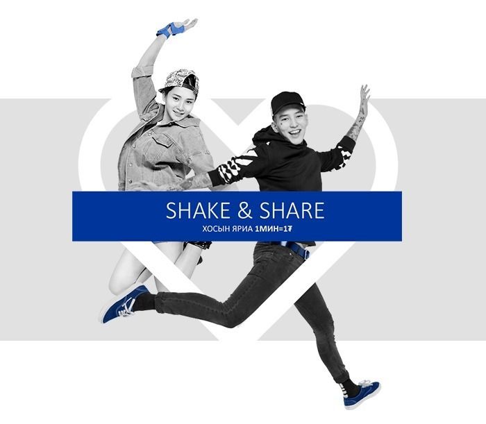 Shake & Share үйлчилгээний хэрэглэгч дотны 1 дугаараа хосоор бүртгэж, хоорондоо ердөө 1 мин=1₮ -өөр ханатлаа ярих боломжтой.