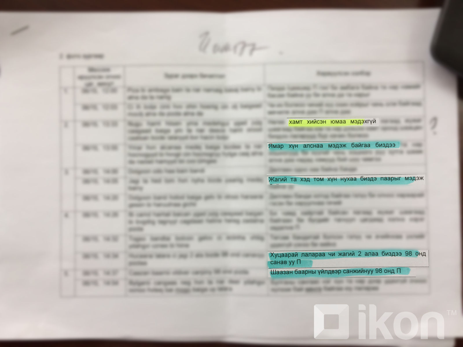 Чимгээ рүү 9598-..... гэсэн утаснаас ямар хүн алсанаа мэдэж байгаа биз дээ. Чи, Жаагий /Содномдаржаа/ та хоёр алаа биз дээ. Намайг эргэж ирээд 5 сая төгрөг өг, үгүй бол би дэлгэнэ шүү. Шаазан ваарны үйлдвэрийг санаж байгаа биз дээ. Жаагий та хоёр дээшээ гарсан биз дээ, би орцонд хүн харж байсан биз дээ" гэх зэргээр нийт 102 мессэж бичсэн байна.
