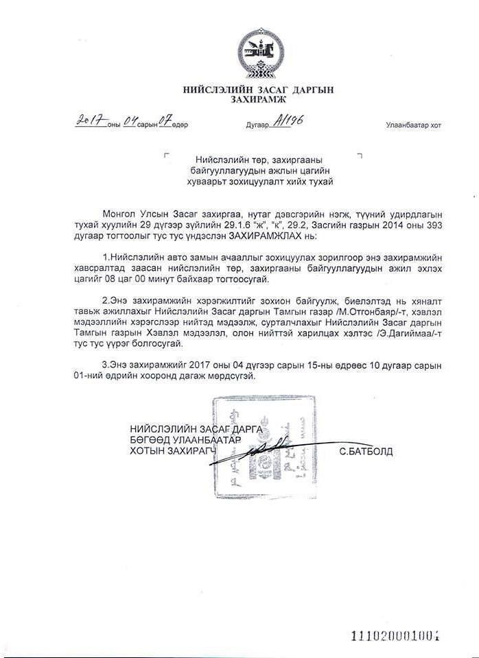 Улаанбаатар хотын авто замын ачааллыг зохицуулах зорилгоор гаргасан энэхүү захирамжаар нийслэлийн төр, захиргааны байгууллагуудын ажил өглөө 08:00 цагаас эхлэхээр болж байна.