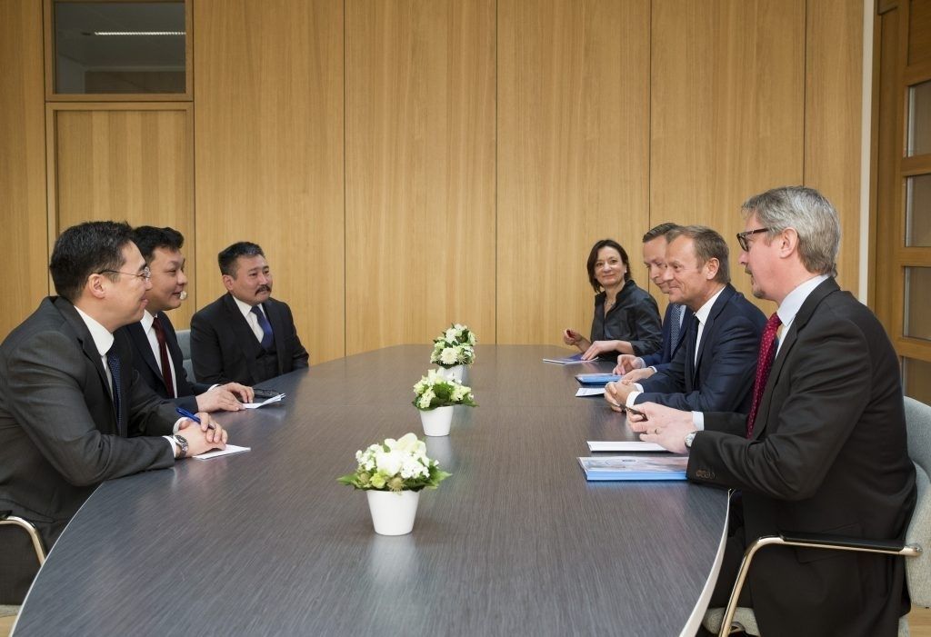 Уулзалтын үеэр Элчин сайд О.Оч Монгол Улсын Ерөнхийлөгч Ц.Элбэгдоржийн мэндчилгээг Европын Холбооны Зөвлөлийн Ерөнхийлөгч Д.Тускд уламжилж өнгөрсөн жил Улаанбаатар хотноо болсон АСЕМ-ын Дээд хэмжээний 11 дүгээр уулзалтад Ерөнхийлөгч Д.Туск биечлэн оролцсонд талархал илэрхийлэв.
