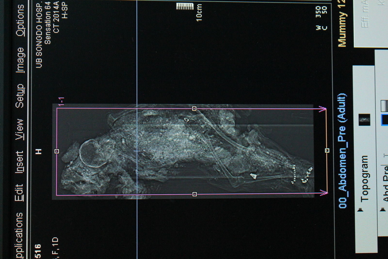 Үзүүр гялангийн хатмал шарилыг ороосон эсгийг задлахаас өмнө доторх эд өлгийн зүйлсийг бүрэн бүтнээр нь тогтоох зорилгоор “Сонгдо” эмнэлэгт компьютер томографийн шинжилгээ хийлгэжээ. Сэргээн засварлалтын үеэр нийт 51 ширхэг эд өлгийн зүйлс байгааг бүртгэсэн тухай Соёлын өвийн төвийн Биет соёлын өвийг хамгаалах хэлтсийн дарга Д.Нарантуяа хэлэв.