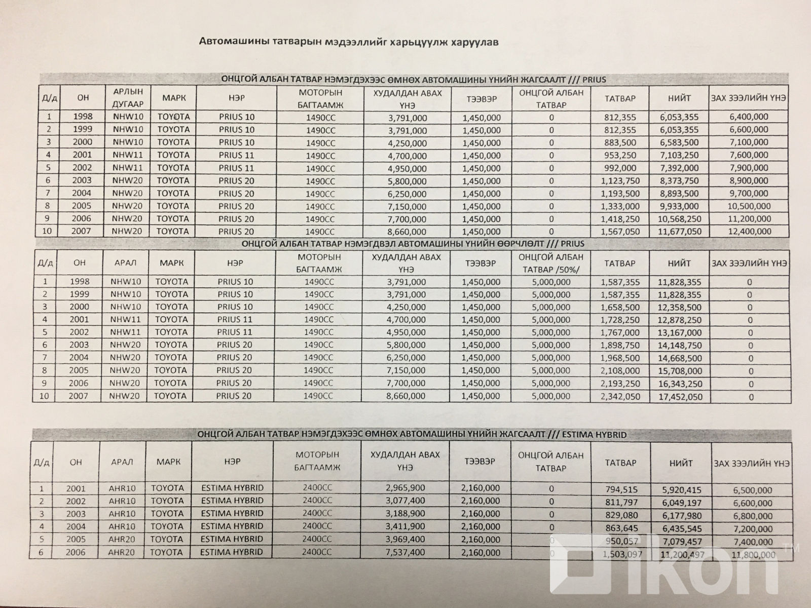 Одоогоор нэг машин импортлогч л гэхэд 20-30 машинтай. Ард түмний ихэвчлэн унаад байгаа Приус машин дээр онцгой татвар нь 5 сая төгрөг, гаалийн татвар нь 15.5 хувьтайгаа нийлээд 6 сая төгрөгийн татвар нэмэгдсэн.