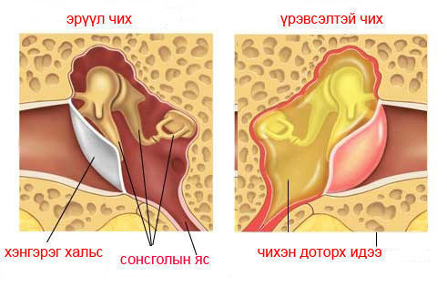 - Дур мэдэн халуун хүйтэн жин тавихаас болгоомжил! Учир нь өвчний эхэн үед хүйтэн жин тавьбал чихний цусан хангамжийг багасган үрэвслийг ихэсгэнэ. Халуун жин тавихад идээлсэн бол түүнийг улам гүнзгийрүүлнэ.