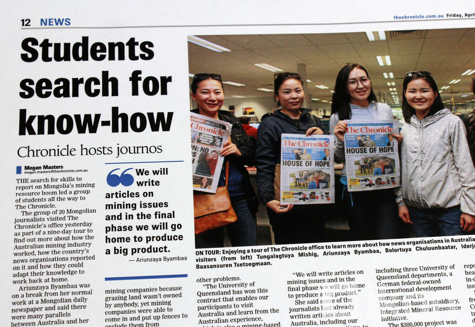 Германы Олон Улсын Хамтын Ажиллагааны Нийгэмлэгийн дэмжлэгээр Монголын эдийн засаг, уул уурхайн сэтгүүлчид дэлхийн шилдэг 50 сургуульд багтдаг Австралийн Квийнсландийн Их сургуулиас жил гаруй хугацаанд үргэлжилсэн дөрвөн блок сургалтыг аваад байна. Тус сургалтын хүрээнд Австрали улсын хэвлэл мэдээлэл, уул уурхайн салбартай танилцах зорилготой сүүлийн шатны сургалт Квийнсланд мужийн Брисбэн хотод боллоо.