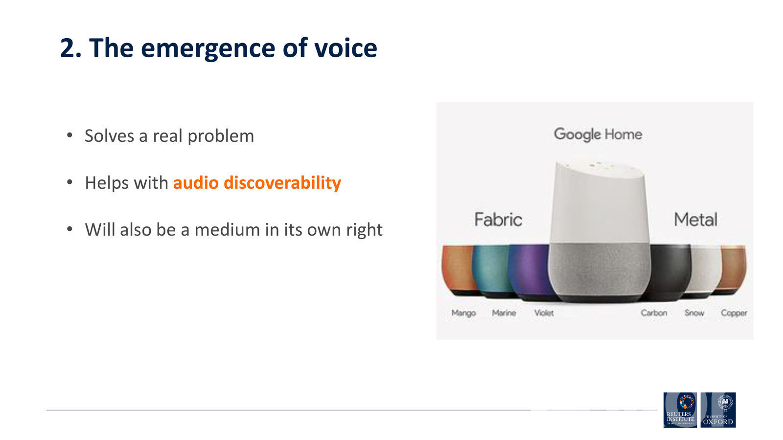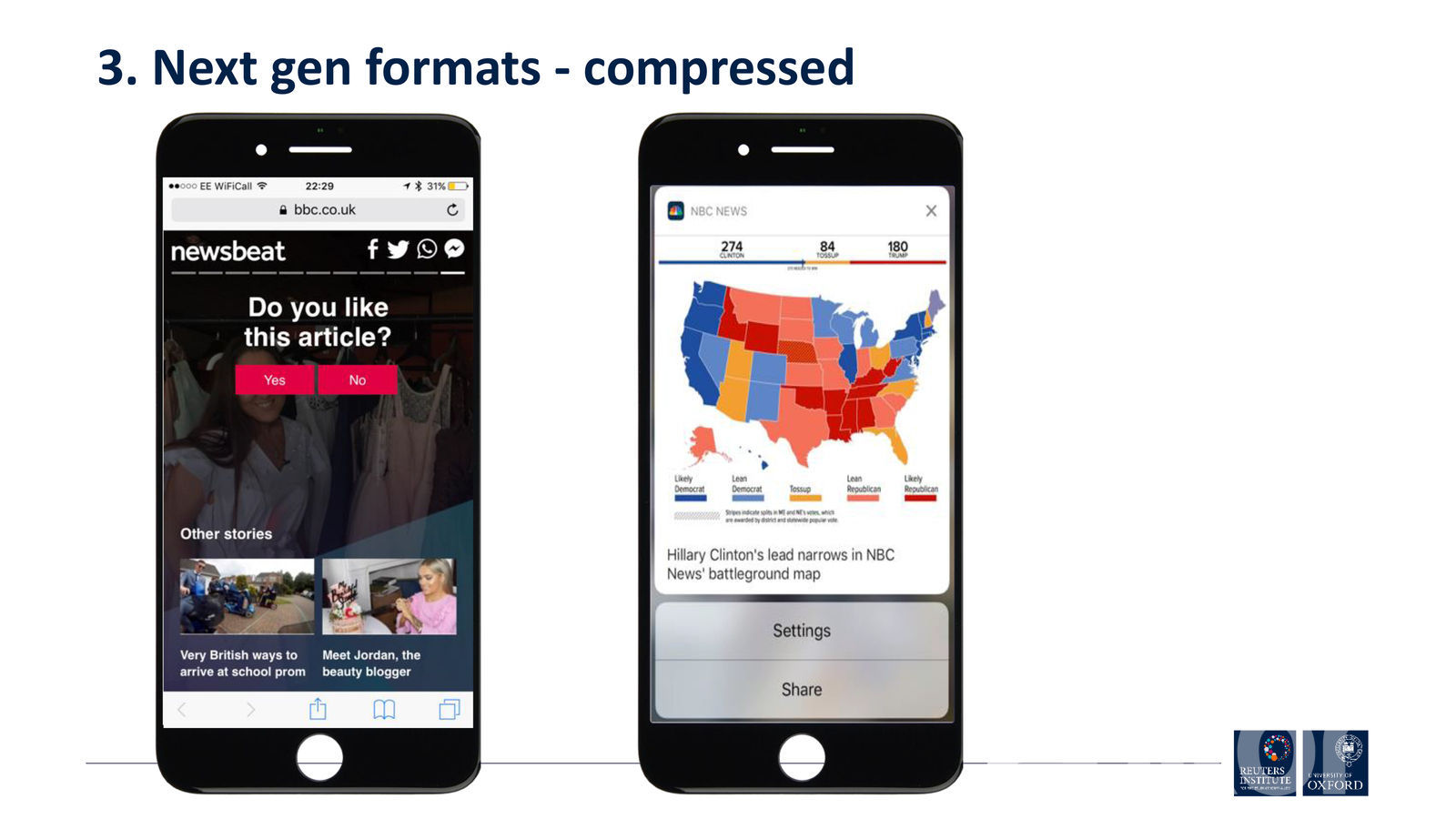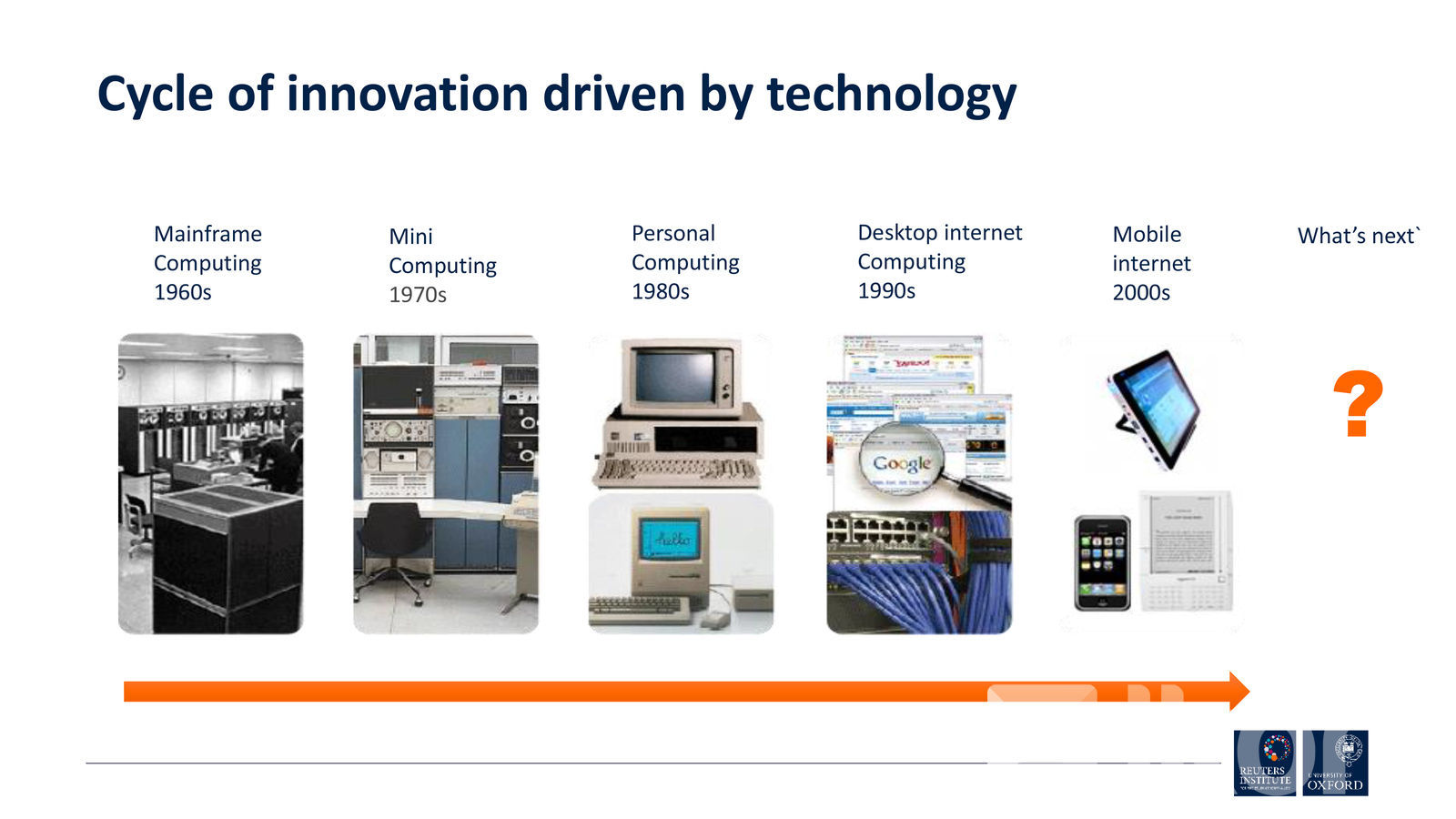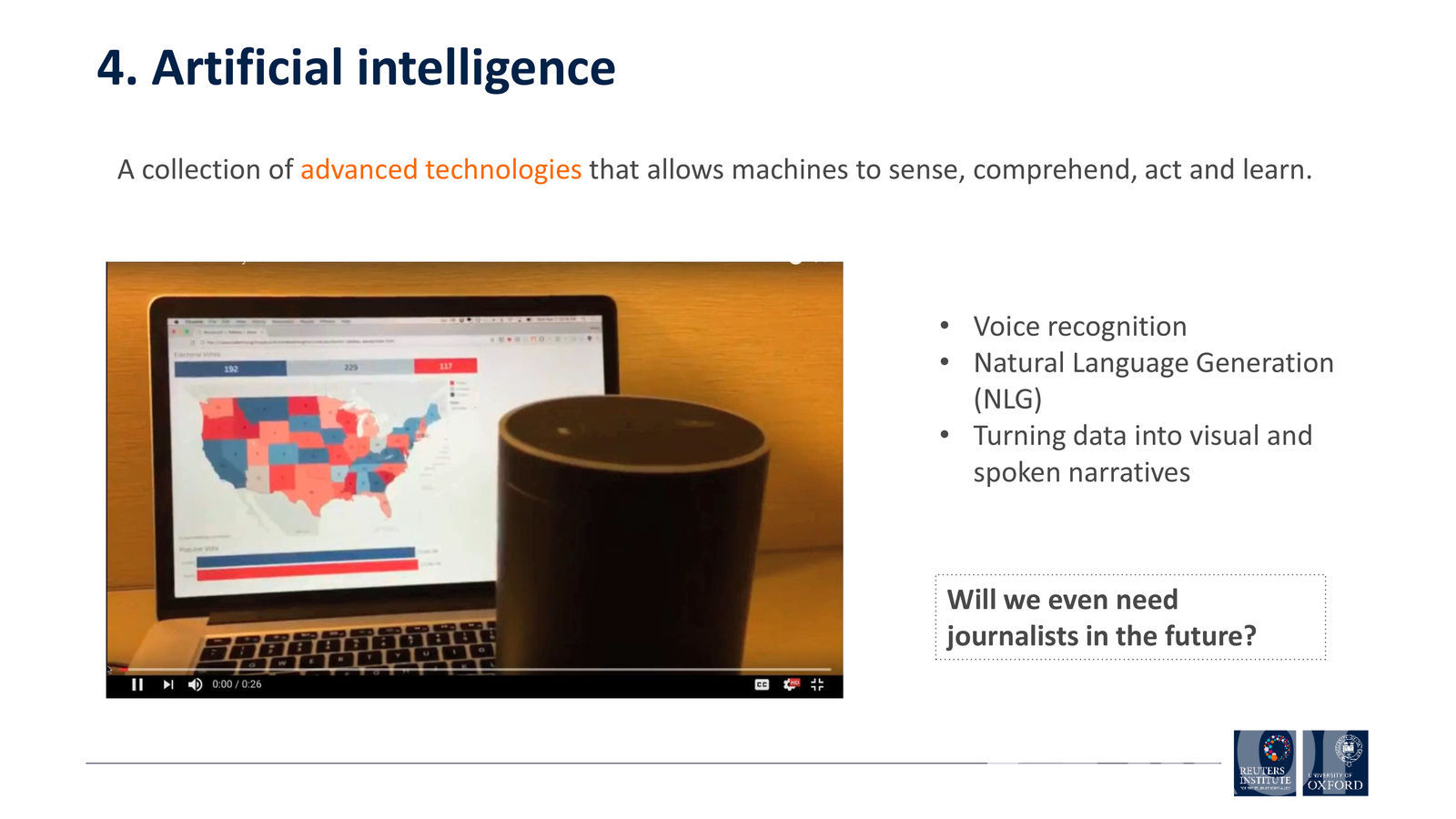 Мөн хиймэл оюун ухаант мэдээллийн сувгууд олноор төрөн гарч ирнэ. Гэхдээ ямар агуулгыг хэрхэн үзүүлэхийг хүн өөрөө л удирдах учир аль болох эртнээс технологи, Big Data ашигласан нь хожих талаар ноён Ник Ньюмэн дурдаж байлаа. Мөн дараагийн хорин жилд дан ганц текст мэдээллээс гадна аудио, видео хэлбэрүүдийг бүгдийг нь хослуулан багц мэдээллийн хэрэгслийг хэрэглэгчдэд санал болгох нь. Энэ хэлбэр рүү мэдээллийн сувгууд аль хэдийнээ шилжсэн ч аль болох бага талбарт буюу гар утасны дэлгэцэнд энэ бүх хэлбэрийн агуулгыг зохион байгуулалттайгаар өрөх шаардлага тулгарч буй.