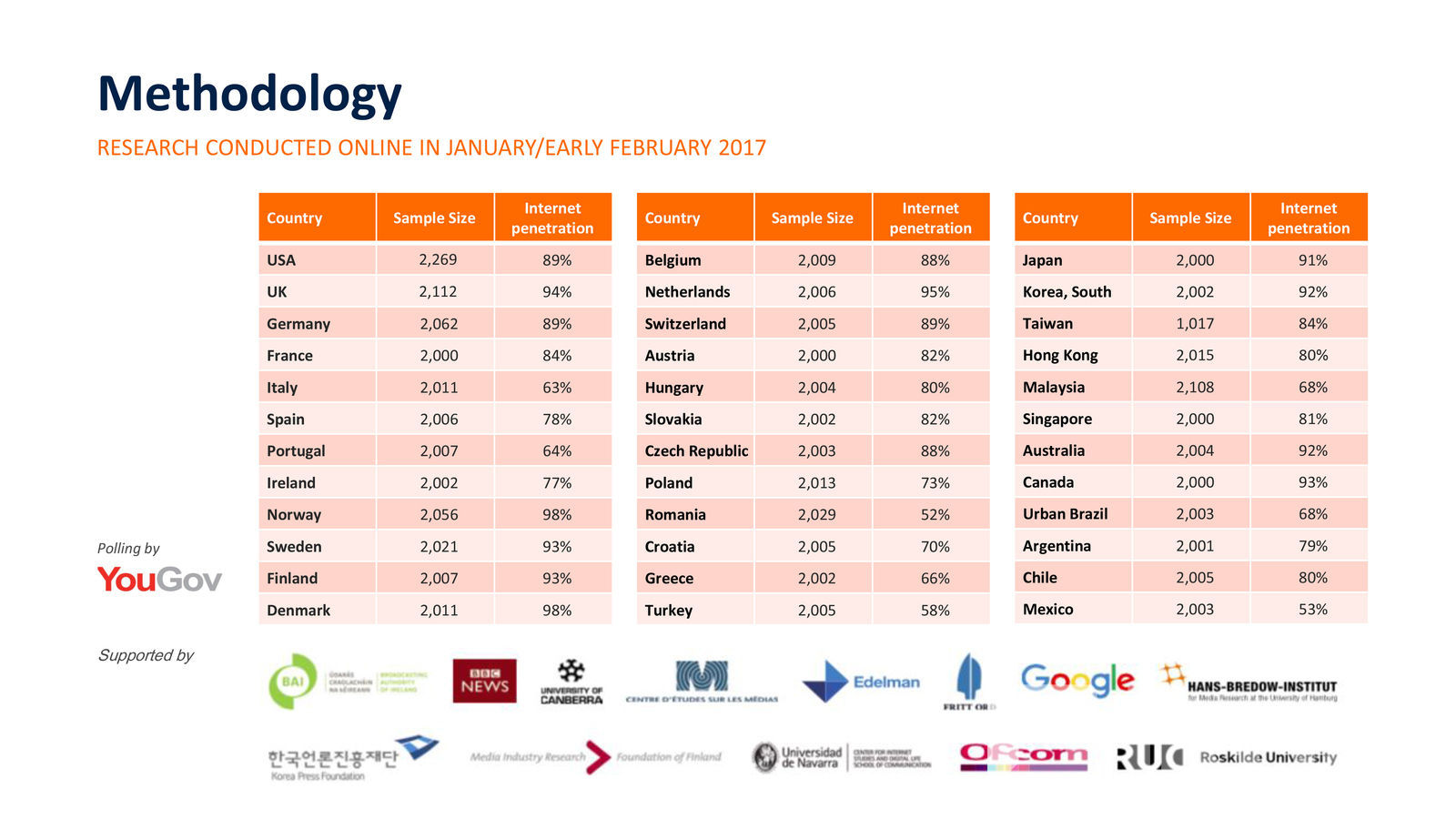 Ройтерс Институт энэ онд дэлхийн таван тивээс 50-иас дээш хувийн интернэтийн нэвтрэлттэй 36 оронг сонгон дижитал хэрэглээг нь харьцуулсан судалгааг хийжээ.