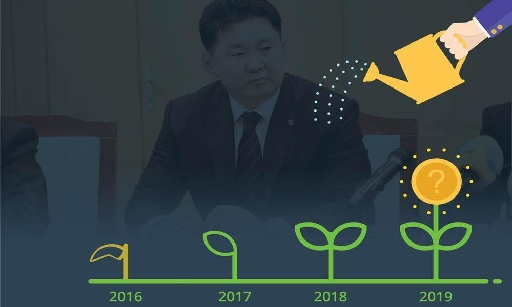 Уржигдар Ерөнхий сайд У.Хүрэлсүх Засгийн газрынхаа эхний 100 хоногийн ажлыг олон нийтэд тайлагнав. Нэг цагийн илтгэлдээ тэр 30 гол ажлаа онцолж, 2016 онд “эрчимт эмчилгээнд” орсон эдийн засгийг 2017 онд “энгийн тасагт” шилжүүлсэн бол 2018 онд энэ “хүнийг” эмнэлгээс гаргаж, гэрт нь аваачаад, эмчлээд 2019 онд ажилд нь оруулж, 2020 оноос ажлаа хийж, цалинтай тогтвортой ажиллахаар болгоно гэлээ.
