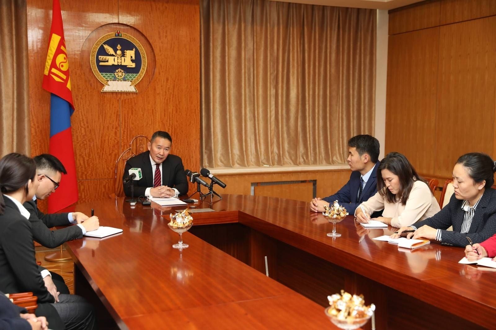 Ерөнхийлөгч эх орондоо ирсэн даруйдаа Дорнын эдийн засгийн чуулга уулзалтыг сурвалжилсан сэтгүүлчдийн сонирхсон асуултад хариулж, ярилцлага өгөв.