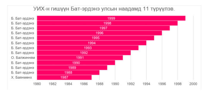 Улсын Их Хурлын гишүүн Б.Бат-Эрдэнэ 1988-1999 оны хооронд улсын баяр наадамд 11 удаа түрүүлсэн. Тэр үеүүдэд улсын их хурлын гишүүн бус улсын аварга байсан учраас бөхдөө хайртай Монголчууд түүний нэрийг хүүхдүүддээ өгөх нь нийтлэг болсон. Зөвхөн нэр өгөөд ч зогссонгүй тэр их хайр нь төрийн түшээд хүртэл болгосон болов уу. Тиймээс ч Монголын хамгийн түгээмэл нэр бол Бат-Эрдэнэ ба дундаж Монгол иргэнийг Бат-Эрдэнэ гэж нэрлэе.