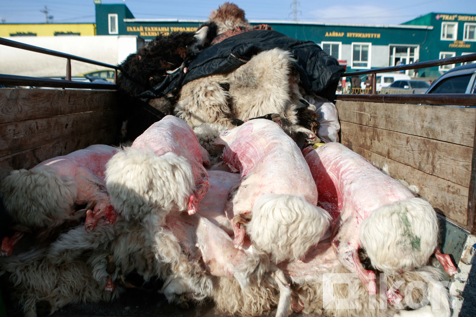 Товчхон яриа ийн төгсөж, бид бог малын мах худалдаалдаг заалыг зорилоо. Хөл хөдөлгөөн ихтэй байдаг энэ хэсэг эл хуль, мах тавьсан цөөн хэдэн лангууг эс тооцвол үндсэндээ хоосорчээ. Баярын амралтын дараахан очсон тул эзгүй байна гэж бодтол зарах мах байхгүй учраас заал ийн хоосорсныг худалдагч нар тайлбарлав.