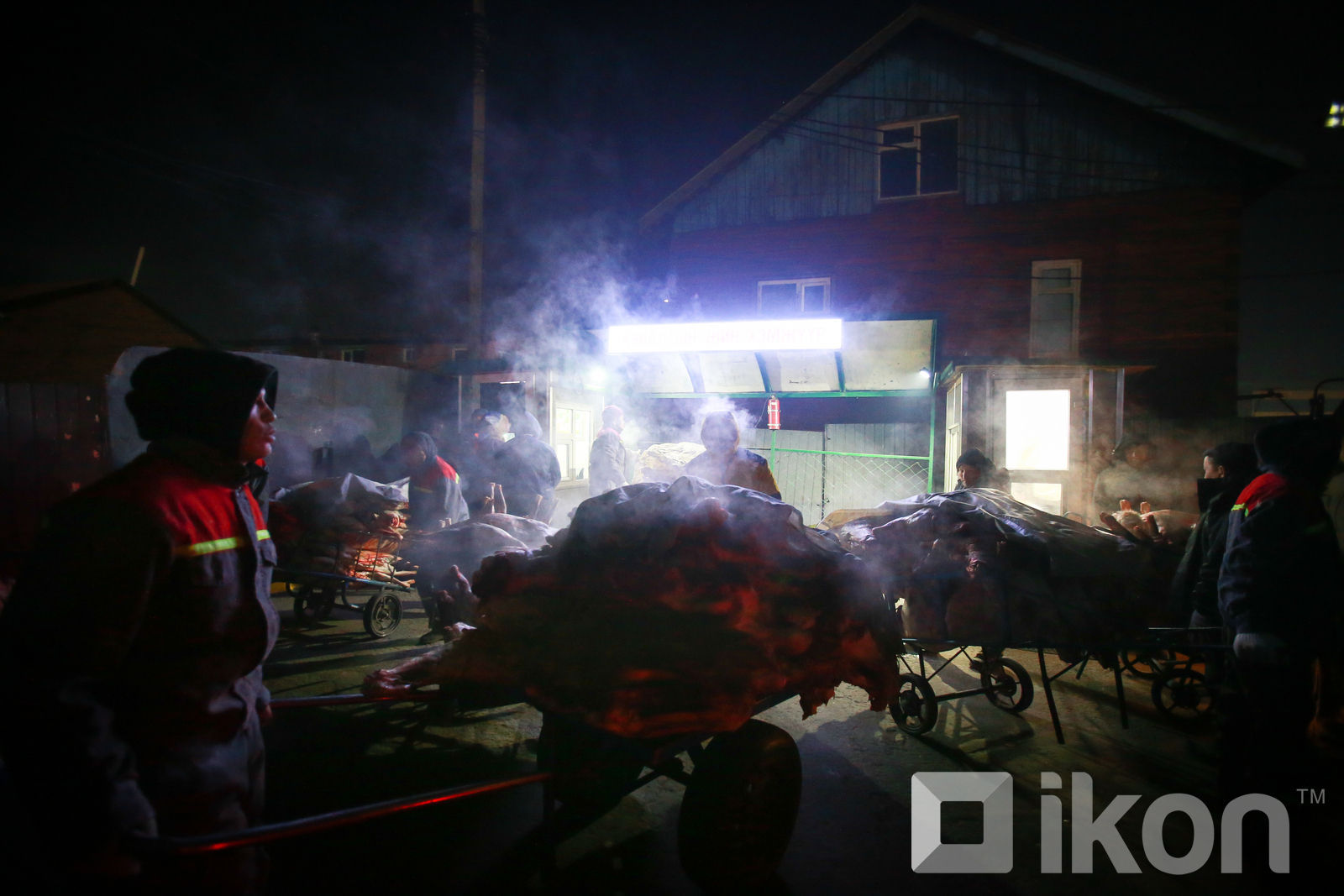 Уг нь 06:00 цаг гэхэд "Хүчит шонхор"-ын худалдагчид бөөнөөр нийлүүлэгчдээс мах авах "ажиллагаа" эд өрнөж байдаг гэнэ. Гэхдээ өчигдөр өглөө цахилгаангүй байсан учраас худалдаа бага зэрэг хойшилжээ. 06:20 цаг орчимд тог ирж, ачааны машинууд ачааны хэсгээ нээснээр худалдаа албан ёсоор эхлэв.