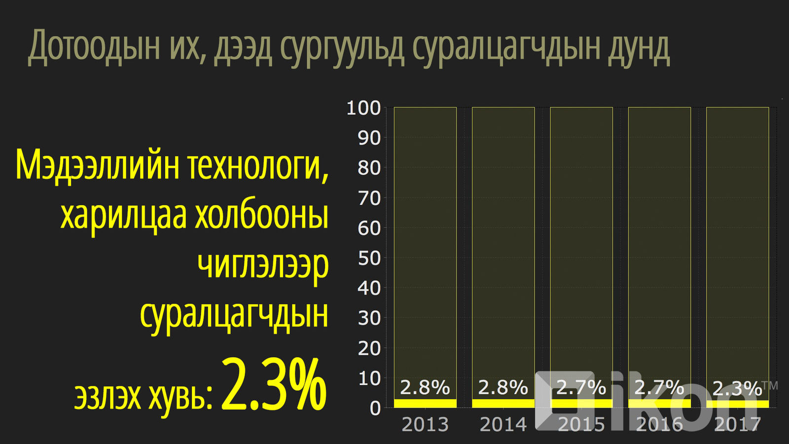 Дэлхий ертөнцөд энэ чиглэлийн ажлын байрнууд улам үнэд хүрээд тухайн улс орнууд хөрөнгө оруулалт хийгээд залуусын сонирхол ч нэмэгдэж байхад Монголд мэдээлэл, технологийн чиглэлээр сурах хандлага буурсаар байна. Одоо сурч байгаа оюутнуудын ердөө 2.3 хувь нь мэдээллийн технологийн чиглэлээр сурч байна.