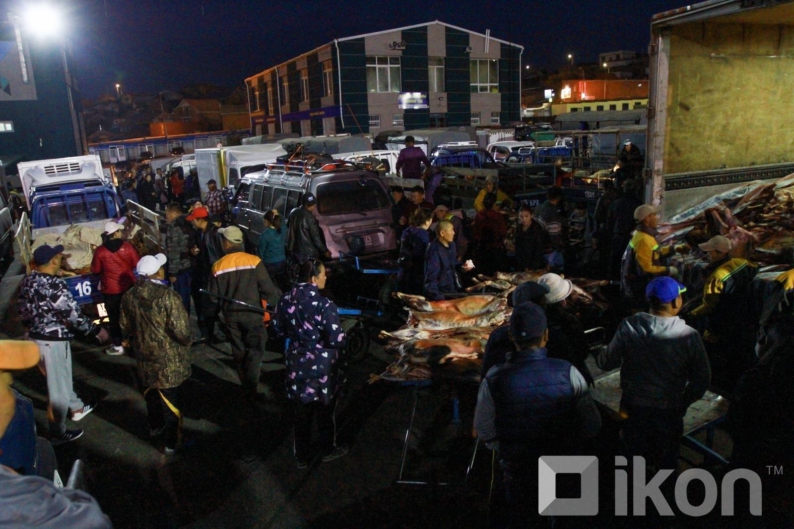 05:00 цагт. Биднийг очиход урьдын адил орон нутгийн дугаартай мах ачсан машинуудыг зах руу оруулж байлаа.