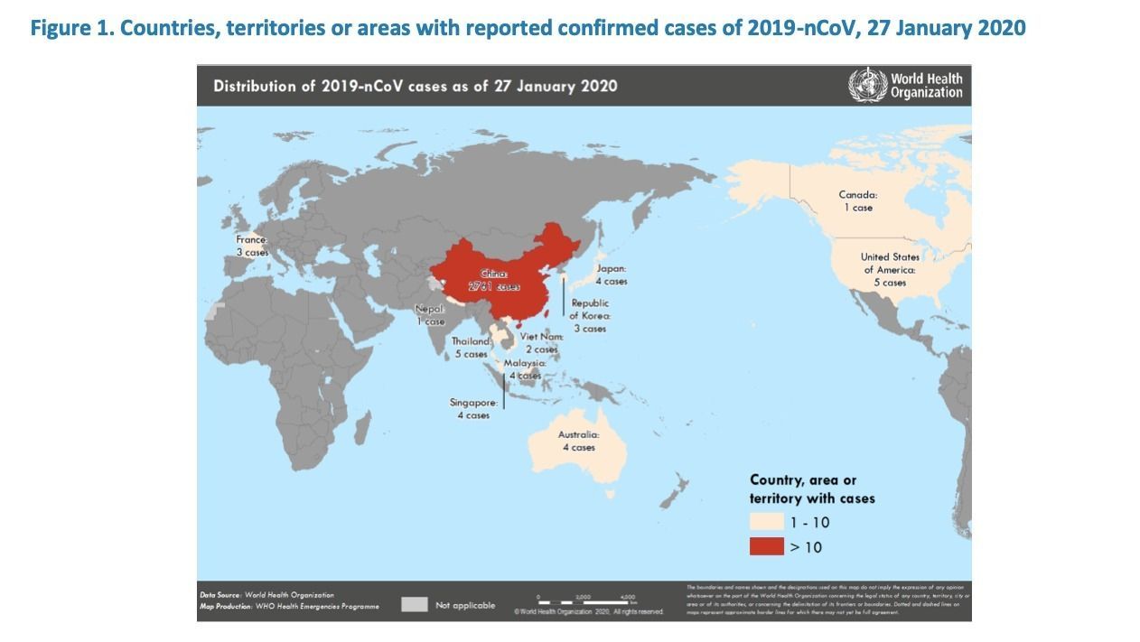 2020 оны 1-р сарын 29-ний байдлаар ДЭМБ-ийн мэдээлснээр БНХАУ, Хонг Конг, Макао, Тайвань, Япон, Өмнөд Солонгос, Тайланд, Вьетнам, Сингапур, Малайз, Непал, Австрали, Америк, Канад, Францад гэхчлэн улс орнуудад 6,000 гаран тохиолдол бүртгэгдээд буй. Үүнээс дийлэнх тохиолдол нь БНХАУ-д бүртгэгдсэн байна.