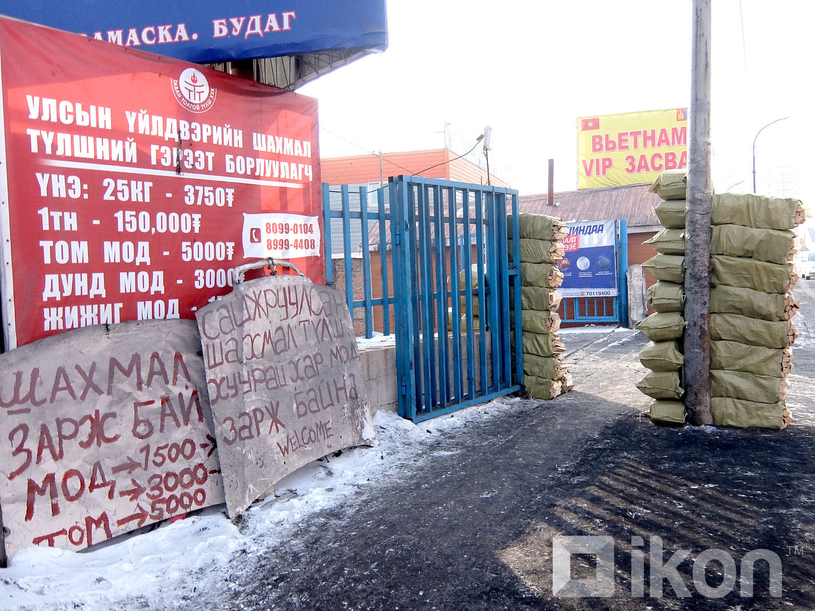 Баянзүрх дүүргийн 76 дугаар борлуулалтын цэгийн гадна овоолж бэлдсэн модноос өөр ямар ч шахмал түлш харагдсангүй. Хэзээ түлш нийлүүлэхийг нь асуухад “Шахмал түлш дууссан. Орой ирнэ” гэсэн хариу өгөв.