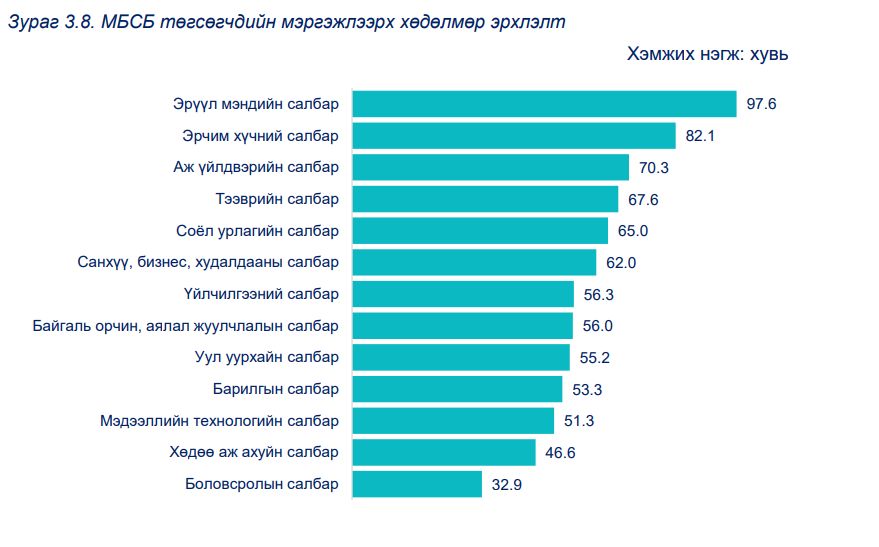 Мөн хөдөлмөр эрхэлж буй их, дээд сургууль төгсөгчдийн 90.2 хувь нь МБСБ төгсөгчдийн 69.1 хувь нь ажил олгогчтойгоо гэрээ байгуулсан гэх судалгаа бий.