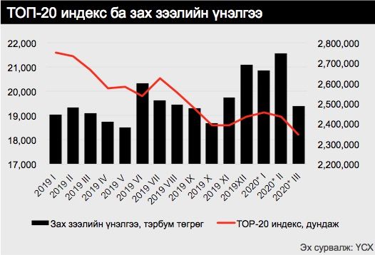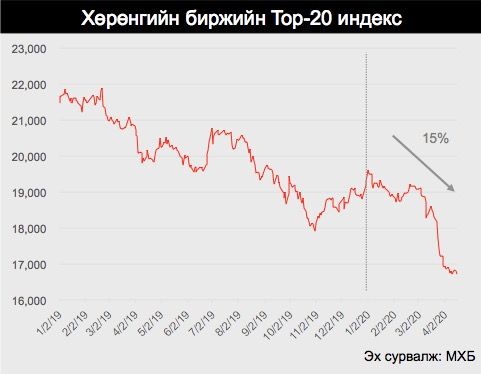 COVID-19-тэй холбоотой нөхцөл байдлаас үүдэн Монголын хөрөнгийн зах зээлийн идэвхжил буурсан байна. ТОП-20 индексийн үнэ оны эхэн үеэс 15% буурсан үзүүлэлттэй байгаа бөгөөд дэлхийн гол гол индексүүд ч мөн сүүлийн 1 сарын хугацаанд үнийнхээ 25 хувийг алдаад байна. Хөрөнгө оруулагчид цар тахлаас үүдэлтэй эрсдэл тодорхойгүй байдлаас зугтан эрсдэл өндөртэй багцаа худалдаж, хөрвөх чадвар өндөртэй буюу эрсдэл багатай хөрөнгөнд эх үүсвэрээ байршуулж эхэлснээр Монгол улсын засгийн газрын болон компаниудын бондуудын үнэ унаж, өгөөж нь огцом өссөн байна. Хэрэв нөхцөл байдал энэ хэвээр үргэлжилж, дэлхийн санхүүгийн зах зээл тогтворгүй хэвээр үлдвэл Монгол улсын дахин санхүүжилтийн өртөг нэмэгдэх эрсдэл өндөр байна.