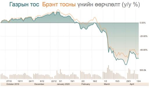 Вирусийн дэгдэлт нь үйлдвэрлэлийн хангамжийн сүлжээг тасалдуулж, эрчим хүч, түүхий эдүүдийн эрэлтийг бууруулснаар дэлхийн зах зээл дээрх гол түүхий эдүүдийн үнэ огцом уналттай байна.