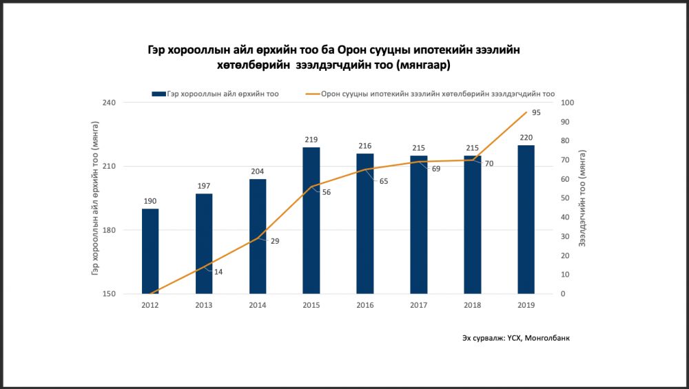 Нийслэлийн цоо шинэ дарга Д.Сумьяабазар намынхаа амласан 150 мянган айлыг буюу жилд наад зах нь 10 мянган айлыг чанартай орон сууцанд оруулна гэвэл дахиад 20 жил шаардагдана. Тийм учраас одоогийн хөнгөлөлттэй зээлээ явуулахаас өөр сонголтгүй. Харин хүү нь Төв банкны бодлогын хүүгээс багагүй бол гайгүй явах боломжтой.