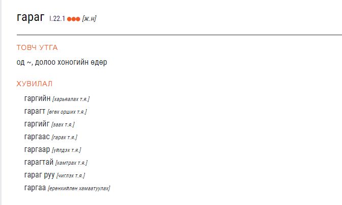 Гэвч энэ үгийн зөв хувиллаар та толиос хайхад доор илэрц харагдана.