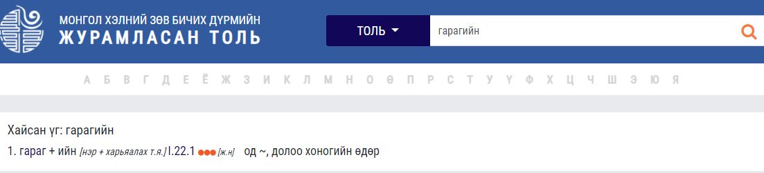 2. "Гараг" гэдэг үгийг "гаргийн" гэж бичих нь зөв байна.
