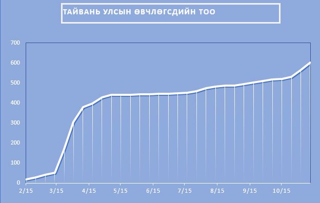Хэрэгжүүлсэн арга хэмжээний жишээг дурдахад: худал мэдээлэл тараах, ард иргэдийн тайван байдлыг алдагдуулах, өдөөн турхирах тохиолдолд 99 мянган ам.долларын мөнгөн торгууль ноогдуулах арга хэмжээ авахаар тогтоосон. Түүнчлэн дотоодод буй иргэдийг хөл хорионы дэглэмийг чандлан сахихыг үүрэг болгож, гадаадаас ирсэн иргэдийг хоёр долоо хоног тусгаарлан, тусгаарлалтын журмыг зөрчсөн тохиолдолд өндөр хэмжээний мөнгөн торгууль /33 мянган ам.доллар/ ноогдуулах арга хэмжээ авсан. Гуравдугаар сарын сүүлээс Тайванд “1 метр”-ийн дүрэм хэрэгжиж байгаа, энэ нь хүнтэй 1 метрээс илүү ойрхон зайд ойртохгүй байх юм. Доорх графикаас харахад цар тахлын эхэн үед л шугам өсөлттэй байгаа бол дөрөвдүгээр сараас шугам тогтворжсон байдалтай харагдаж байна.
