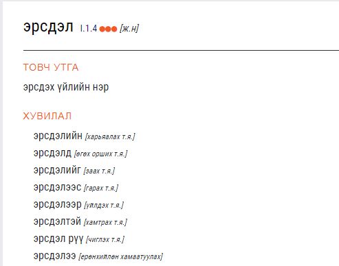 Тухайлбал, "эрсдэл" гэдэг үгийг "эрсдэлийн" гэж зөв хувиргаснаар хайхад толиос олдохгүй.