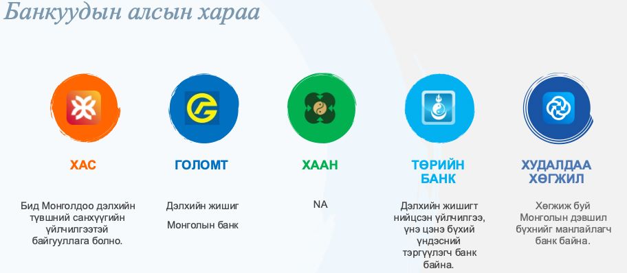 Удахгүй банкуудын хувьд ч гэсэн хөрөнгийн зах зээлээс хөрөнгө татахтай холбоотой зах зээлд өөрсдийгөө улам бүр таниулах ажлууд хийгдэж эхэлнэ. Улмаар банкуудын уриа үг, эрхэм зорилго, алсын харааг та бүхэн олонтаа сонсох биз ээ.