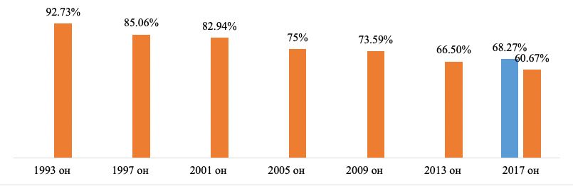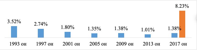 Зураг 3. 1993-2017 оны Ерөнхийлөгчийн сонгуулийн хүчингүй санал болон “Цагаан сонголт”5