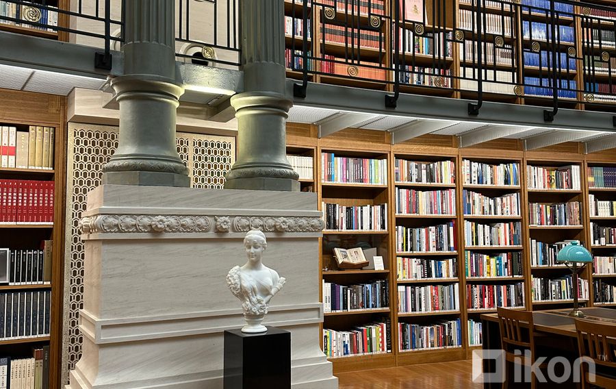 Энэхүү номын санг байгуулахдаа франц мэргэжилтнийг урьж ажиллуулжээ. Энд буй сандал ширээ, гэрэл, цонх гээд бүгдийг нь Францаас авчирсан байна. Дээврийн хэсэгт эртний болон орчин цагийн хүн төрөлхтний соёл иргэншлийн түүхэнд үнэтэй хувь нэмэр оруулсан 16 хот, газрын нэрийг байрлуулжээ.