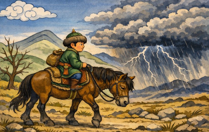 2026 оны эдийн засгийн зурхайд дээрх зураг буужээ. Унасан морь нь Монголын эдийн засаг гэж бодвол нэлээд ядарсан дүр зурагтай. Уух ус, идэх өвс ховор, асга хадтай газраар бүдчин явж буй харагдана.