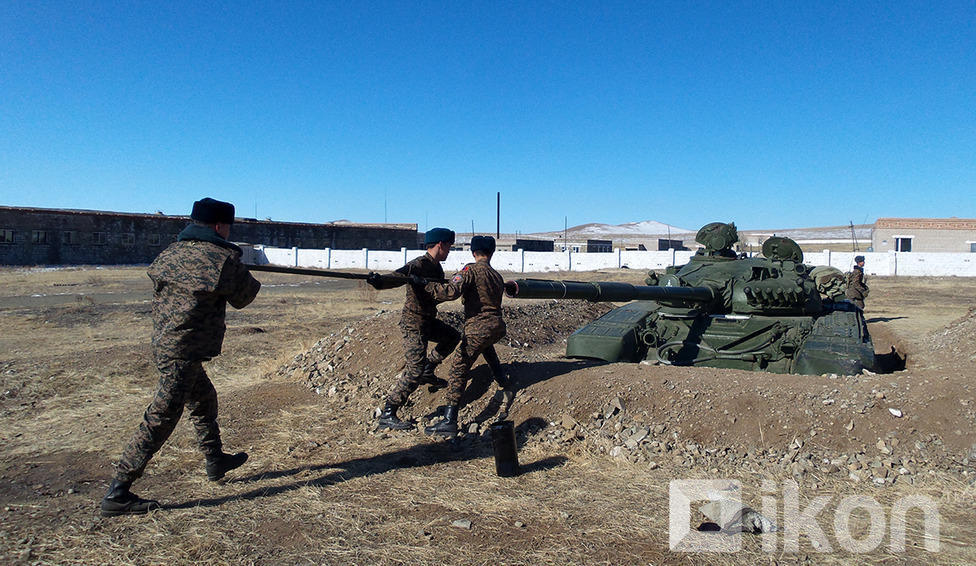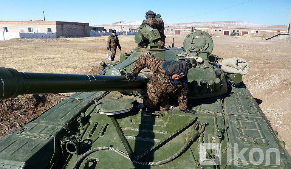 14.10-14.50 цаг: Тавдугаар цагийн хичээл. Сургалтын нэгдсэн цэгт. Т-72 танк дээр практик дадлага хийж байна.