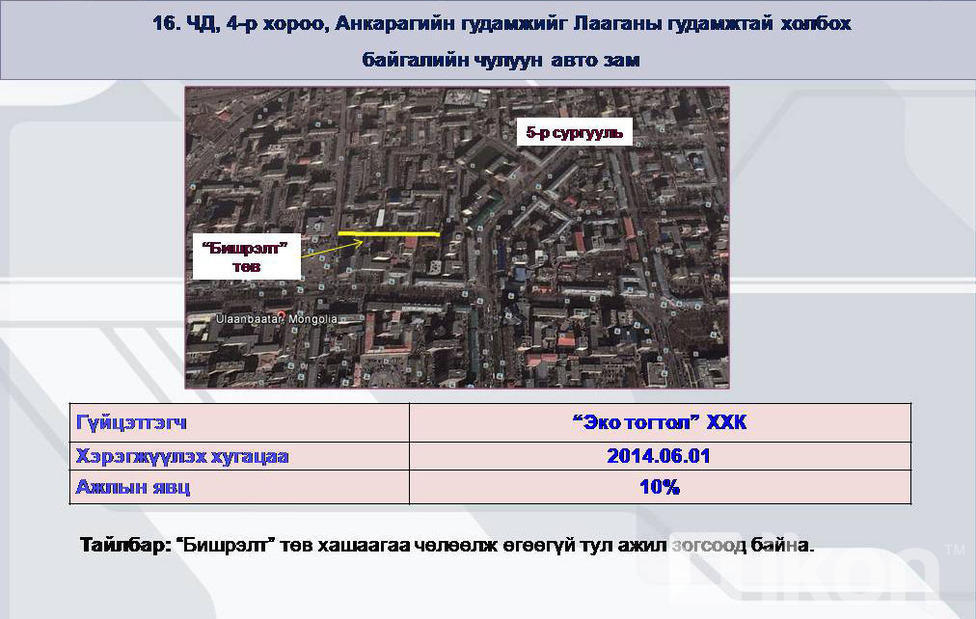 Та бүхэнд Нийслэлийн автозамын газраас гаргасан он дамжин хийгдэж буй замын ажлыг танилцуулж байна.