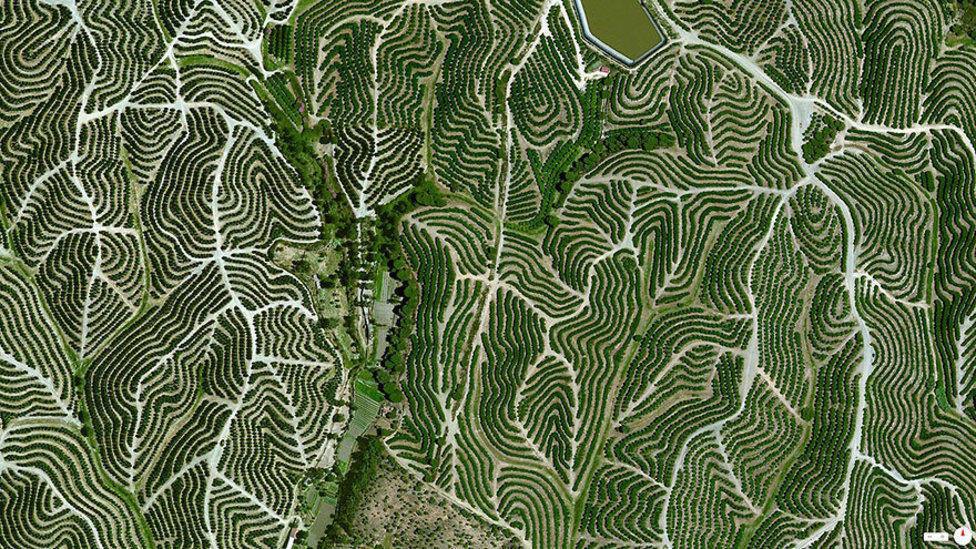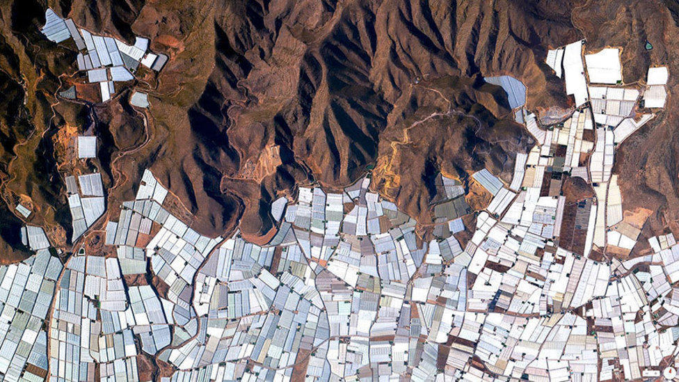 36.78234°N 2.74315°W Альмерь, Испани. 20,000 га газар хамрах хүлэмжийн талбай харагдаж байна.