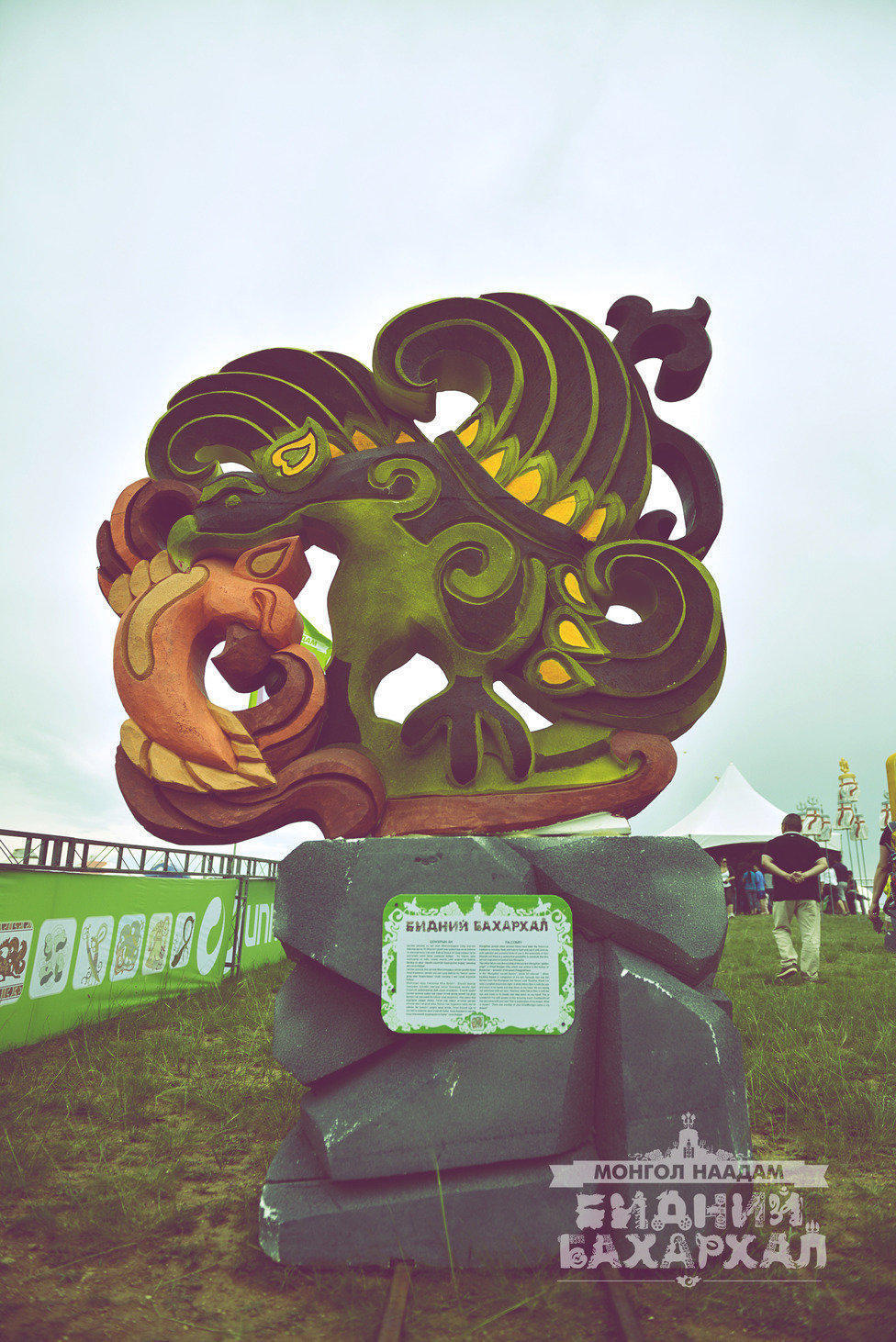Баяр наадмын өдрүүдэд Хүй долоон худагийн дэнж дээр Их Гүрэн, Алтайн ятга, Дөрвөн бэрх, Монгол гэр, Хааны тамга зэрэг Монгол түмний бахархал болсон 12 эд зүйлсийг биетээр хийн наадамчин олондоо сонирхуулжээ.