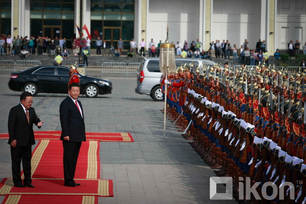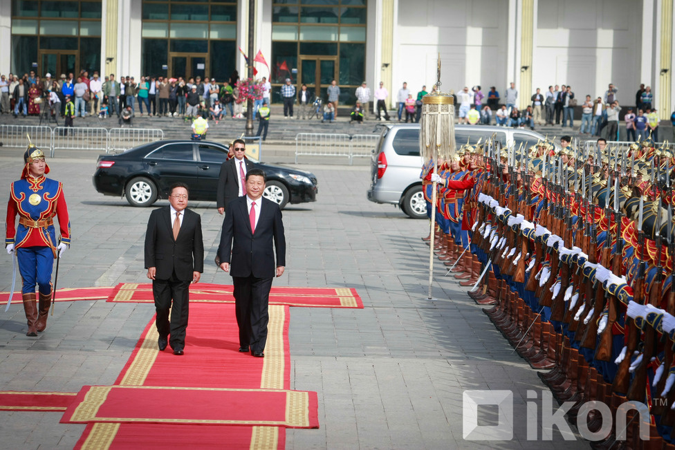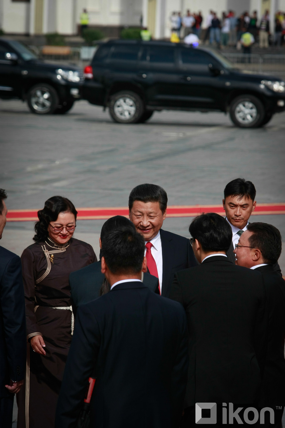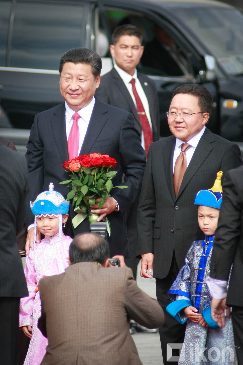 Монгол Улсын Ерөнхийлөгч Ц.Элбэгдорж, тэргүүн хатагтай Х.Болормаа нар Бүгд Найрамдах Хятад Ард Улсын Дарга Си Зиньпин, гэргий Пөн Ли-Юань нарыг Чингисийн талбайд албан ёсоор угтах ёслол боллоо.