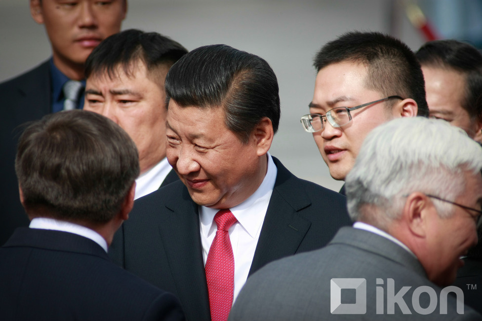 Хоёр орны төрийн дуулал эгшиглэсний дараа Монгол Улсын Ерөнхийлөгч Ц.Элбэгдорж, БНХАУ-ын дарга Си Зиньпин нар хүндэт харуул, угтан авсан хүмүүстэй мэндчилсэн юм. Үүний дараа тэд Төрийн ордонд хүрэлцэн ирж, БНХАУ-ын дарга хүндэтгэлийн дэвтэрт гарын үсэг зурав.