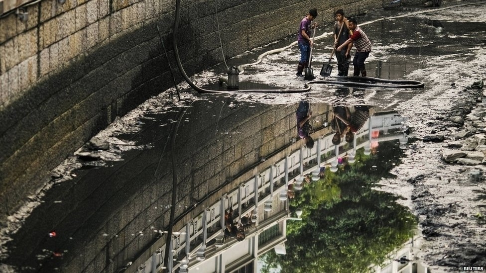 Ливан нуурын ойролцоох сувгийг цэвэрлэж буй ажилчид. Хятад улс Гуандон муж. 2014.10.29