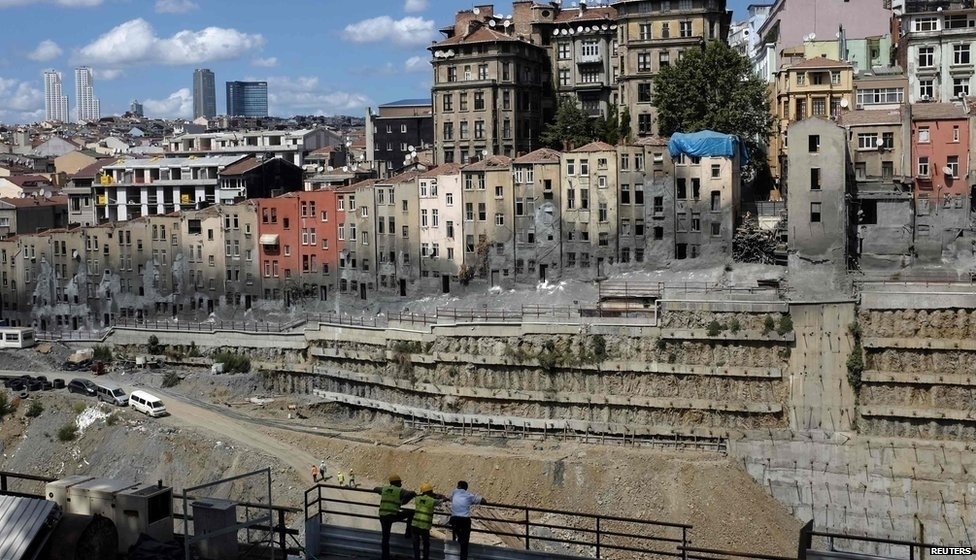 Биёолгу дүүргийн барилгын хэсгээс гадагш харж буй ажилчид. Турк улс Истанбул хот. 2014.10.29