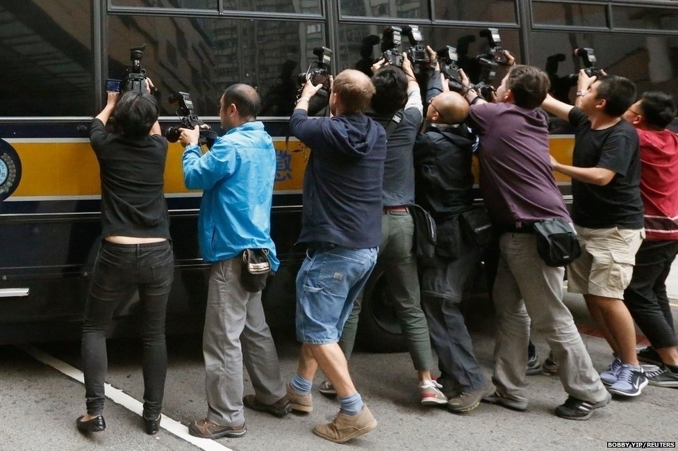 Хонг Конгод хоёр эмэгтэйн амийг хөнөөсөн хэрэгт сэжиглэгдээд буй 29 настай, Их Британийн иргэн Рурик Жуттингийг баривчлах үед түүний зургийг авч буй зурагчид. 2014.11.03