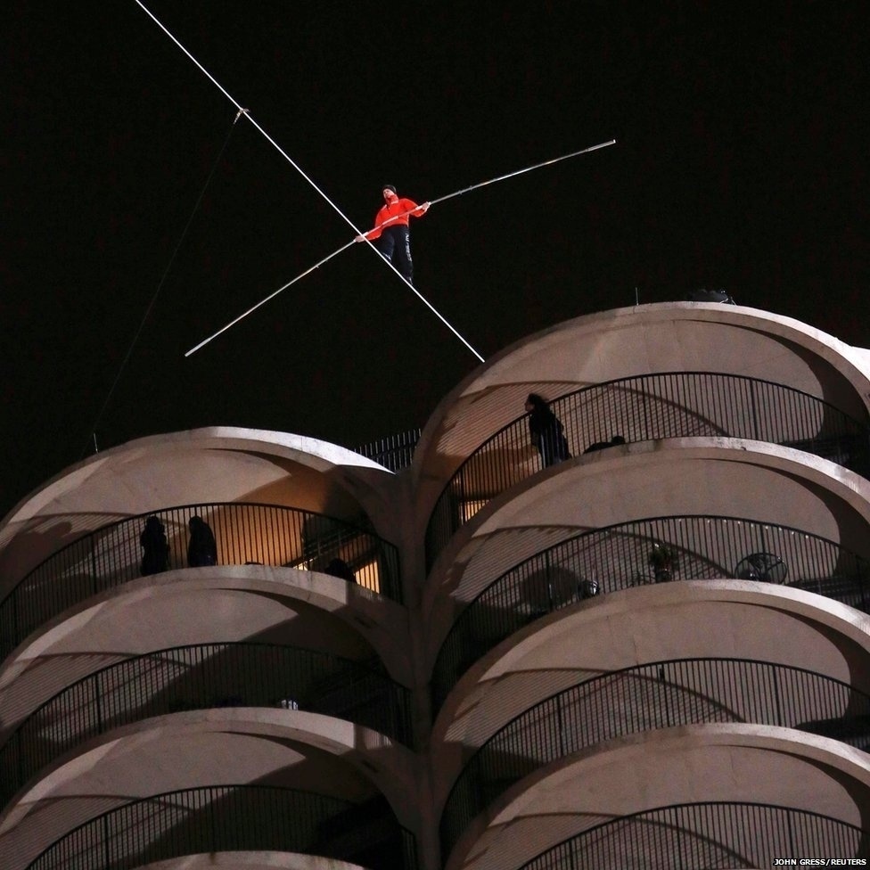 Ник Валланда гэгч эр Чикагод өндрийн алхалт хийж байна. Тэрээр ямар ч хамгаалалтын хэрэгсэлгүй байгаа аж. 2014.11.03