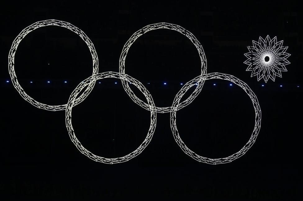 “Сочи 2014” Өвлийн олимпийн наадмын үеэр Олимпийн таван цагирагны дөрвийнх нь гэрэл асаж байгаа нь. 2014.02.07