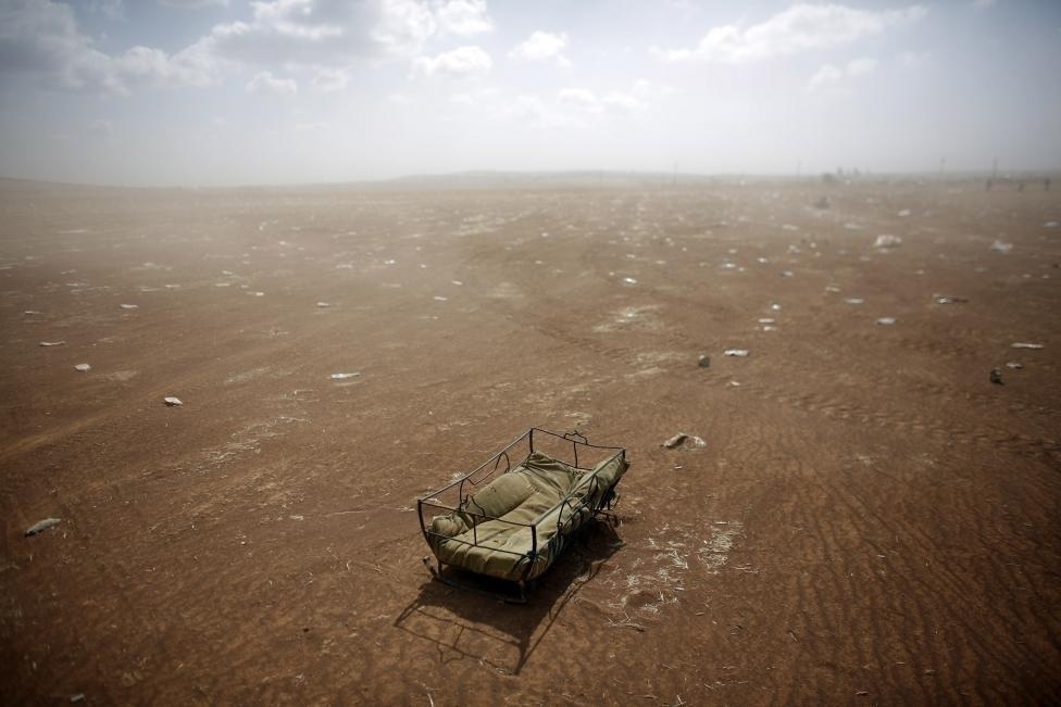 Сирийн дүрвэгсдийн үлдээсэн хүүхдийн ор. Сурукын ойролцоо Турк-Сирийн зурвас. 2014.09.27